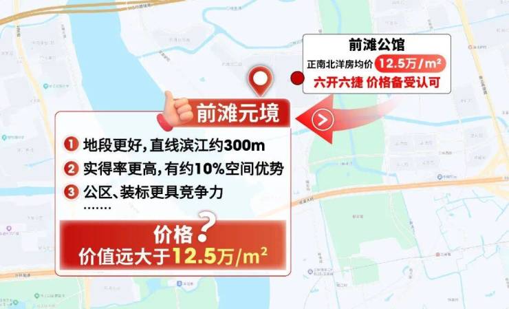 其实答案很明确,我们可以先以前滩滨江的标杆项目——前滩公馆为核心锚点。