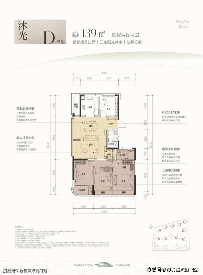 滨江时舟里售楼处营销中心:400-8818-994滨江时舟里售楼处电话/地址☎:400-8818-994(开发商热线)建筑面积约139m²D户型,同样也是四房两厅格局,相比124户型,每套都远离项目南侧主干道,私密性和环境更优,是高净值注重隐私客群的不错选择。南向3面宽,三房朝南阳光充足,家庭成员都有着独立的生活空间。连着约6.5米封闭阳台,可打造多个生活场景。
