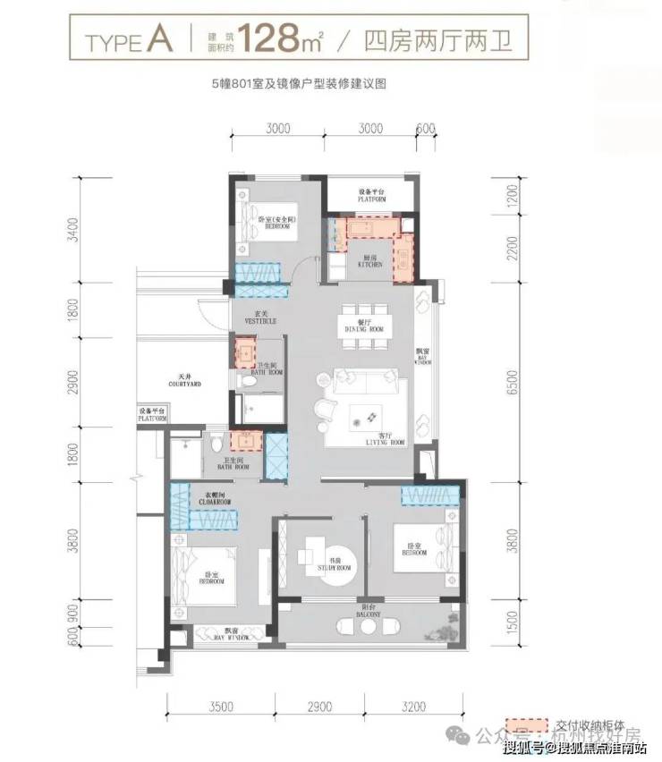 建面约128方户型图示意