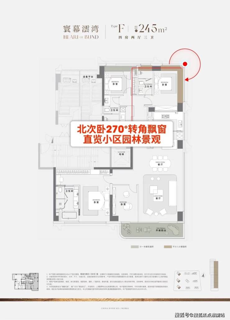 ⑤北次卧套房270°转角飘窗,直览小区园林景观!