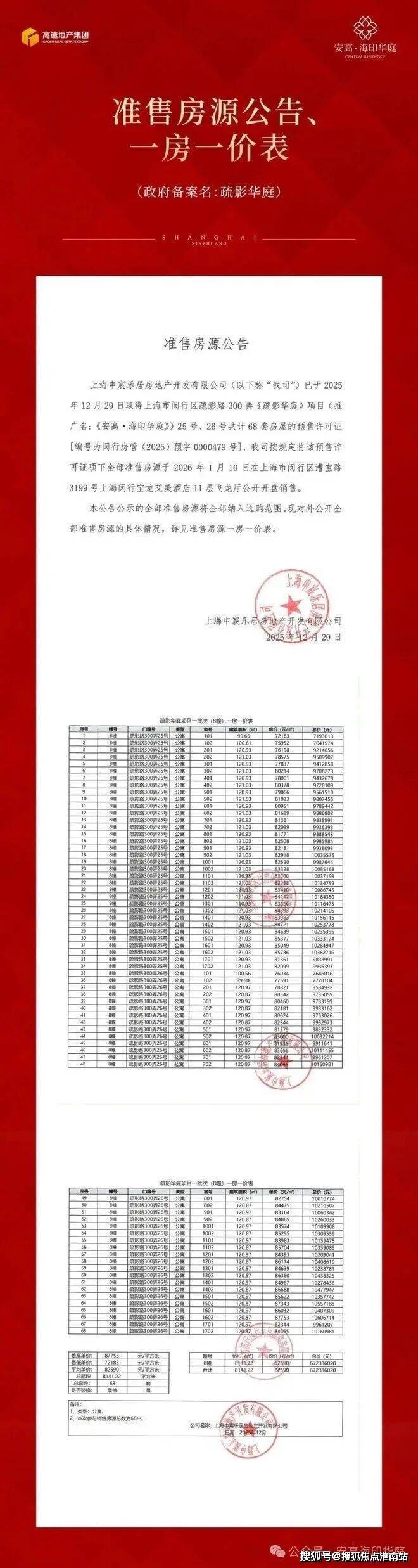 莘庄“地王”!「安高·海印华庭」首推68套约100-120㎡3房;均价82590元/㎡!