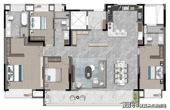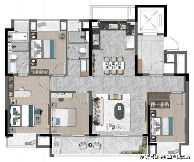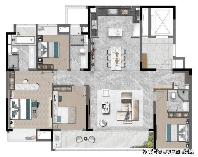 约16.3m超大面宽、约9.1m阔绰阳台,满足买房人对“终极改善”的所有期待。整个客餐厅空间大到可以直接开派对,孩子奔跑玩耍,父母烹茶看书,一家人吃饭谈天……约45㎡社交空间,健身、影音、八人宴会同时进行毫无压力!