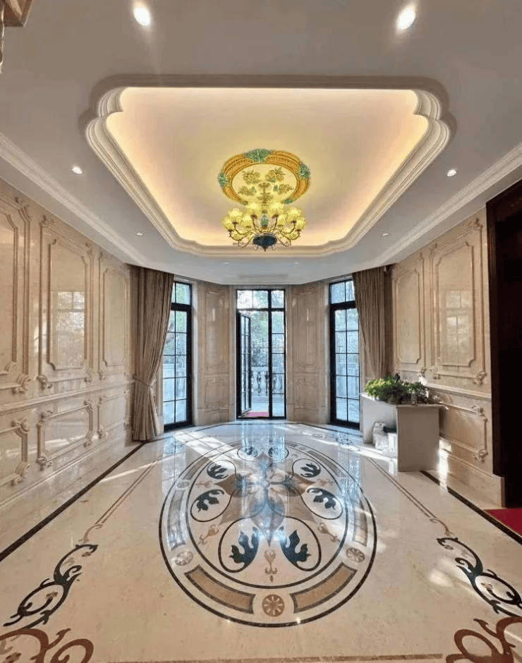 法式城堡重现雍容华贵,再续法式皇家风范。从整体到局部,精雕细琢,镶花刻金都给人一丝不苟的印象。一方面保留了石材材质、色彩本质的特定风格,让人感受到传统的历史痕迹与浑厚的文化底蕴,同时又摒弃了过于复杂的肌理和装饰,勾勒出奢华的气息。