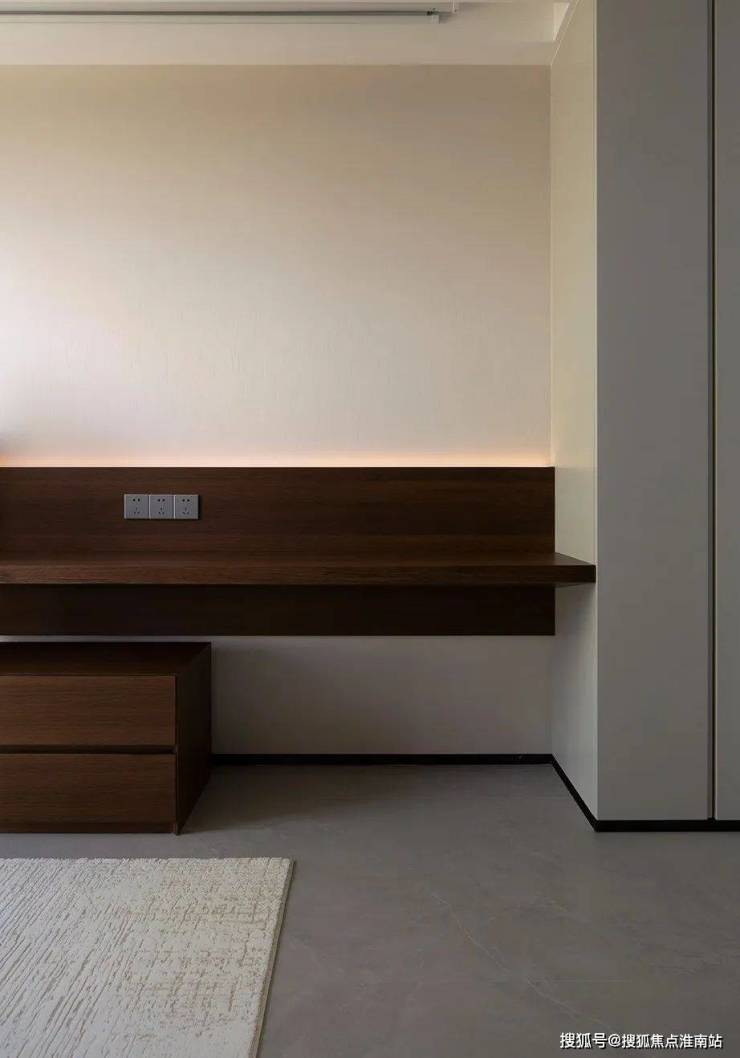 同样兼顾书房、琴房、衣帽间多功能属性的次卧套房,呈现出素雅简净的居住格调,整体简约而实用的功能布局,绘制着安静的底蕴,让人可以从容不迫地潜入时间的夹缝里,丰盈生活。