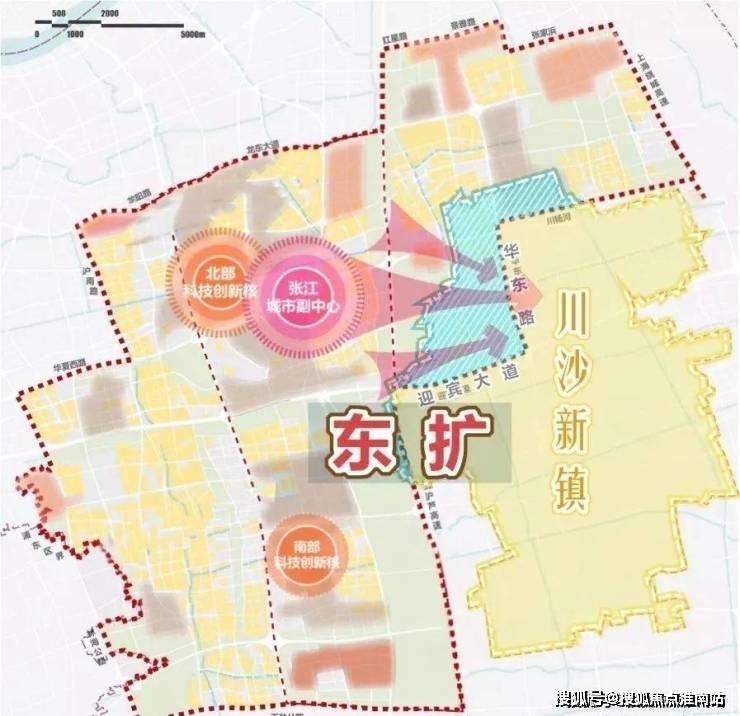 在《张江科学城“十四五”规划》中,张江科学城已经向东扩区到川沙镇域范围内,直接纳入了整个华东路以西的川沙城镇。这对川沙来讲是个极其重大的利好。张江东扩未来将对川沙的城市界面、配套设施、人口能级、地段能级等等,形成极大的改善,唐镇就是最好的例子。