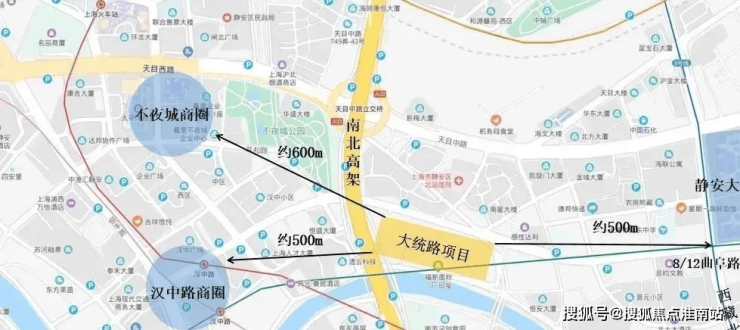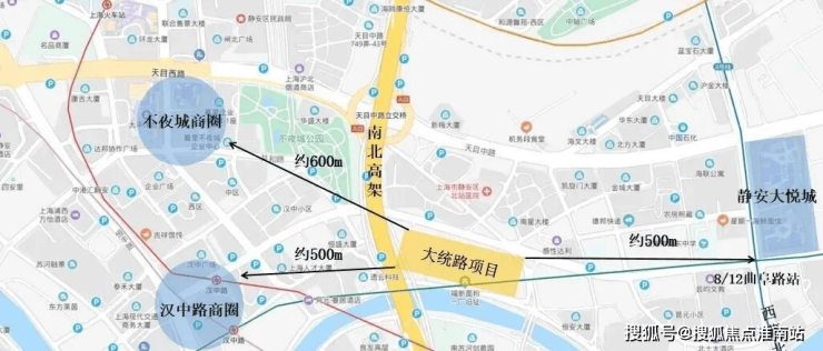 商业配套:周边500米左右有静安大悦城、万象天地、汉中路商圈,约600米可至不夜城商圈。另距离人民广场商圈约1公里,距离南京路步行街约1.8公里。