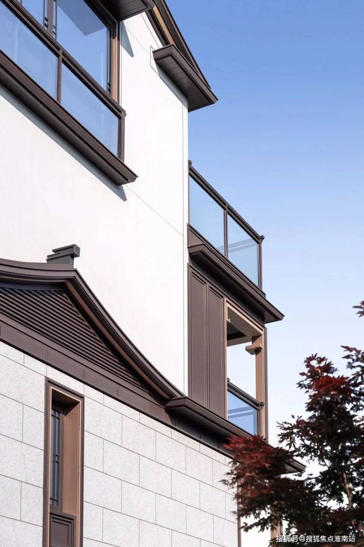 1、1⃣大师筑境悬山顶、歇山顶等东方屋檐,举折、鸱吻、悬鱼等屋脊装饰,并结合铝板+极简线条等现代元素,营造独具韵味的当代山水建筑