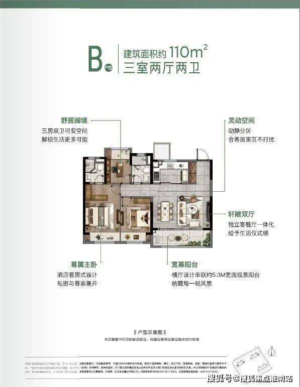 轻奢臻宅(110㎡):南向双卧,双卫设计,总价约160-190万元