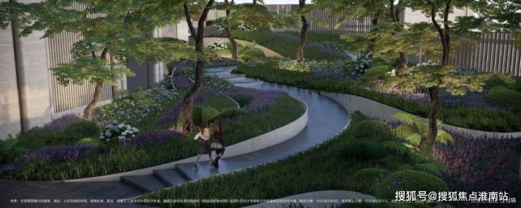 通过设计,将小区景观打造成了立体台地花园,设置缓坡、下沉式花园、台阶等,让整体景观表现出立体层次感,错落有致。