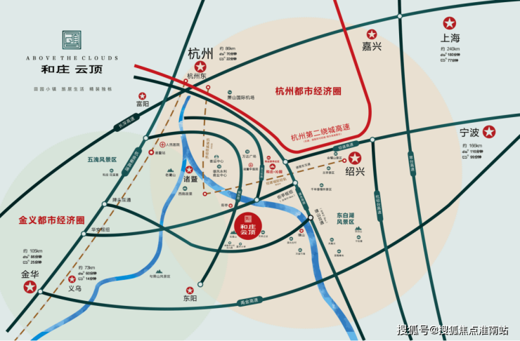 项目到诸暨市区13公里,开车大概15分钟左右,到高铁站20公里左右,开车不到半小时。高铁到杭州,每天30多趟高铁动车,高铁到杭州东站也就20分钟左右。