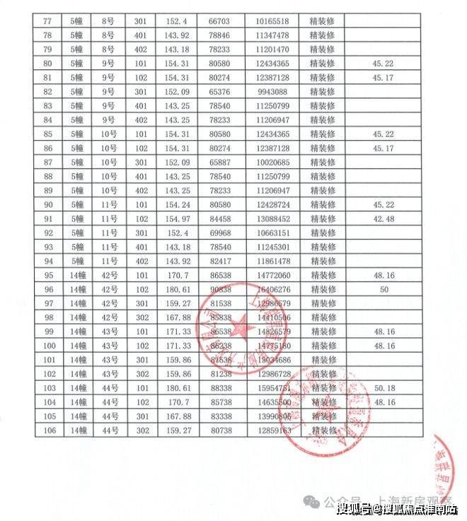上期一房一价表如下: