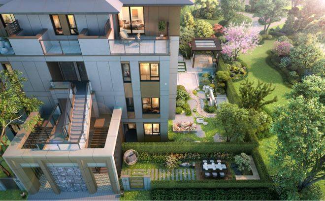 下叠精髓是亲近自然的庭前绿地,面积可观,延展出大家庭多种居住的可能性。
