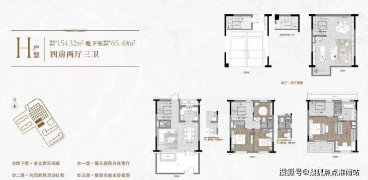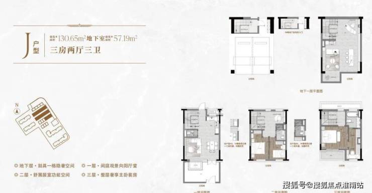 一楼和地下室主社交和志趣,二楼是子女的房间,三楼是主人休憩区。
