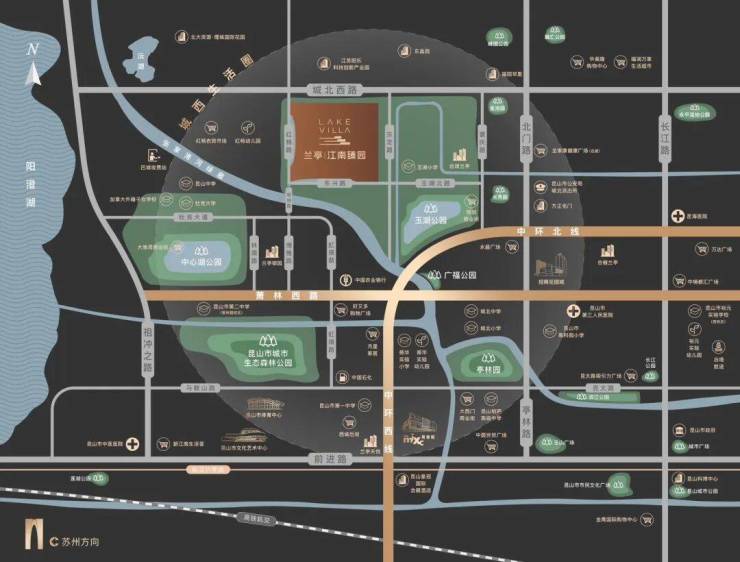 项目择址昆山城西核心,这里是政府重点打造的西部副城,汇聚了整座城市顶级的生态、商业与教育资源。