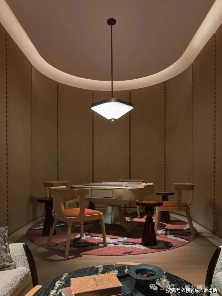 漆砚260㎡户型:户型参考漆砚制作方式,以“玉德”显质地,以“金声”隐赞誉,主卧吊顶还原砚台之形,以漆砚般闪耀琢序空间。