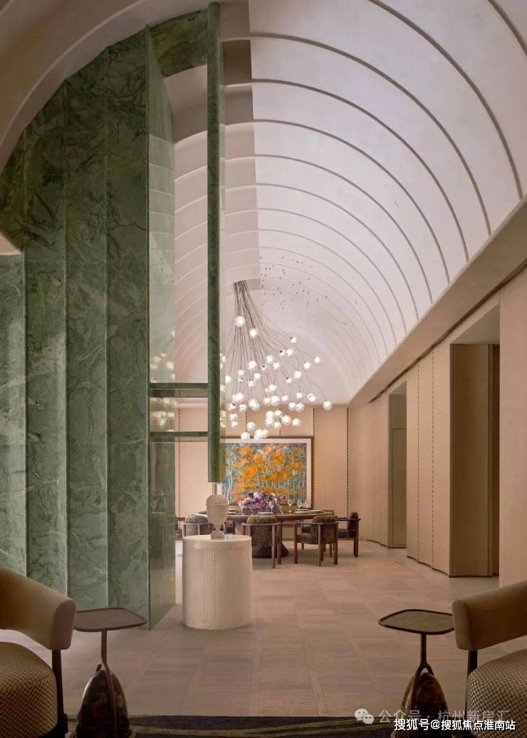 整体抬高约3米,钱二新规1号作品:作为钱二新规1号作品,杭序府整体抬高约3米,以开创者的姿态,将社区的公区架构从横向铺排转为立体打造,依次向上叠加地上架空车库、楼幢架空层等。在垂直维度,正式开启一场关于仪式与秩序的革命。