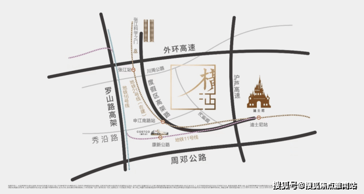直线距离张江科学之门(在建)约4.8km,直线距离迪士尼乐园约2km,这样的天赋地段,造就了项目独有的红盘基因。