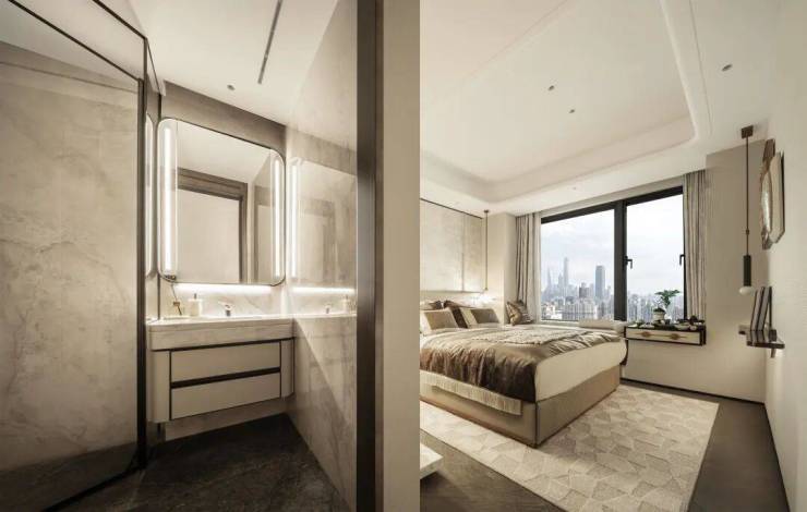 瞰景主卧| 观景飘窗主卧套房,六扇门步入式衣帽间,尽瞰虹口百年