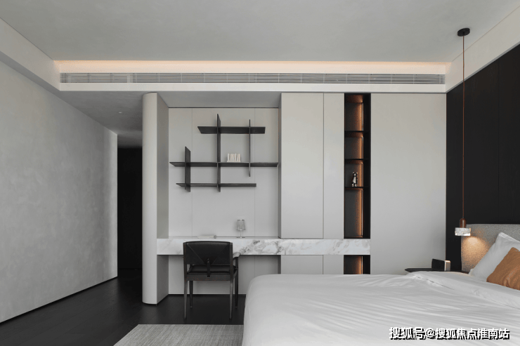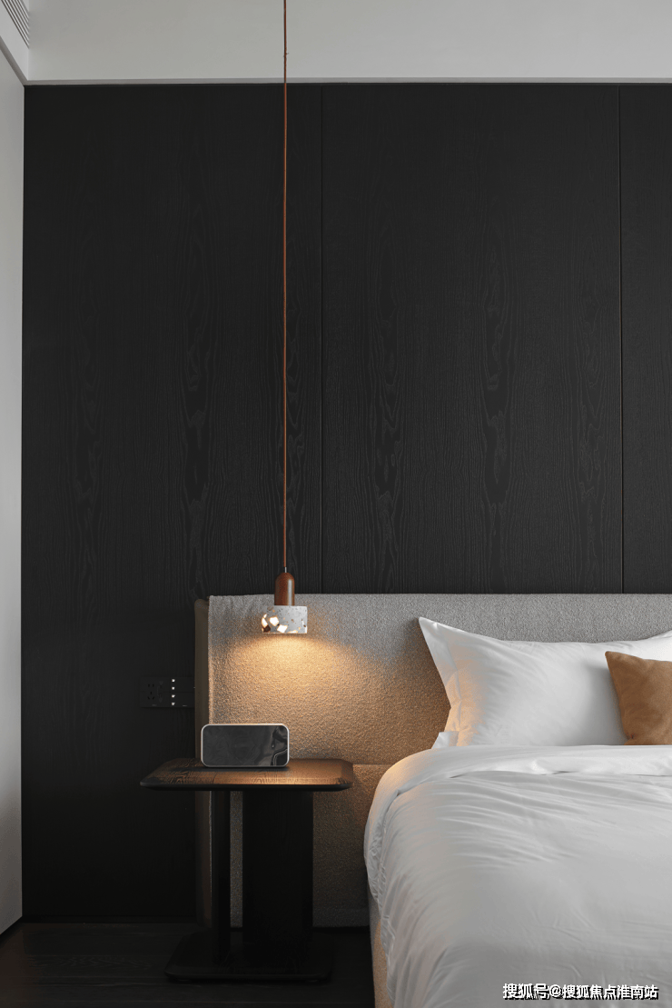 卧室空间更为重视尺度感与氛围的营造,在色彩、灯光及温润材质的互相映衬下,让疲惫的身心得到栖息。