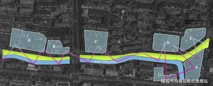 总共7个零散地块,是一个毛地城市更新项目。中间穿插了两条自然河流,一座滨河绿地,多条道路,各自体量都不大,但沿万安路连成一线。