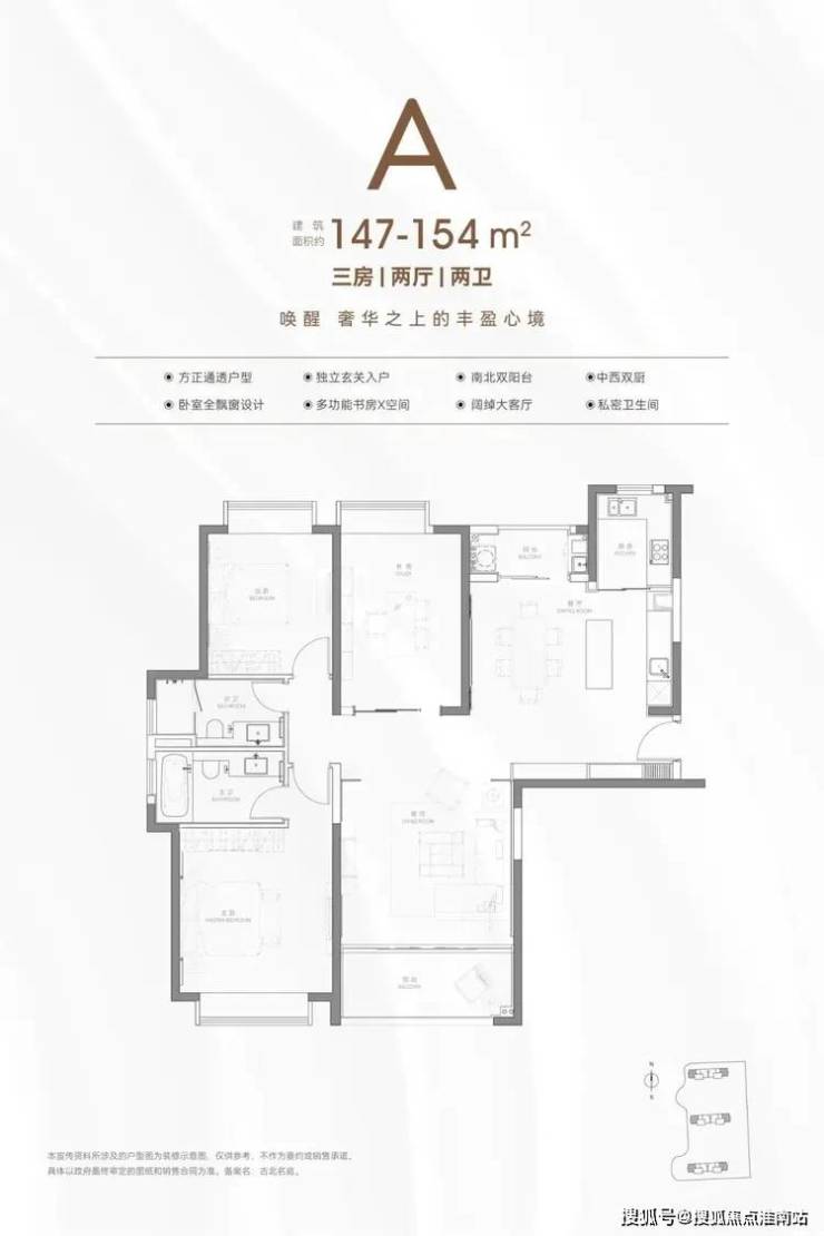 值得一提,该户型餐厨空间可塑性很强,3房可成长“3+1”房,用作工作间、琴房等,改善一步到位,比固定不变的4房更灵活。