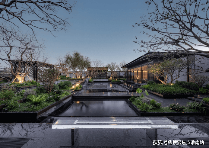 又比如,项目延续了张园“引水入园”的理念, 将长200m近1000m²的水系覆盖到整个社区内。水景形态各异,有中心静水、三层跌水、点状涌泉、立面叠瀑、弧形流水五大不同呈现方式。水系的引入,让整个社区彻底灵动飘逸了起来。