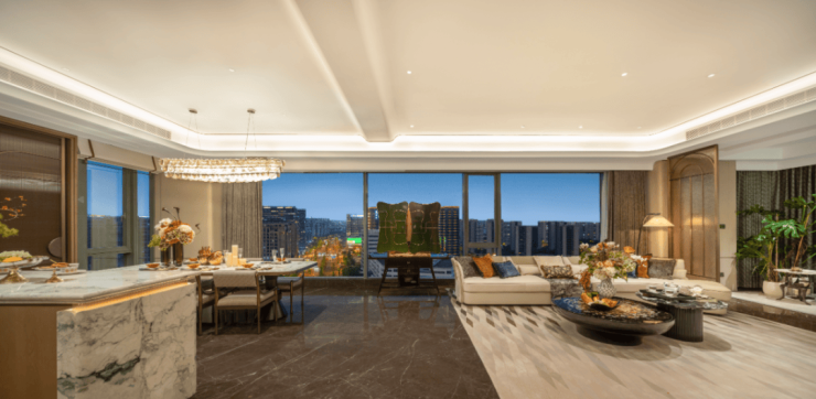 270°环幕视野将整座城市的繁华与光影纳入日常,晨起的朝霞、午后的暖阳、夜晚的璀璨灯火,都成为家中流动的背景。这已不仅是观景,更是以一种从容姿态「收藏」城市天际线,让心境与视野一同开阔。