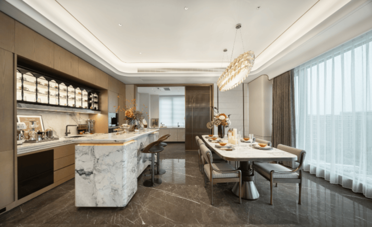 人间烟火气,最抚凡人心。绿城·凤咏朝阳让这缕烟火,升腾出精致与温馨。中西双厨的巧妙布局,是生活仪式的完美起点。 西厨区一座360°环形复合功能岛台,不仅是料理的操作中心,更成为家庭的社交枢纽。清晨的咖啡、午后的甜点、晚间的轻食,皆可在此从容完成。