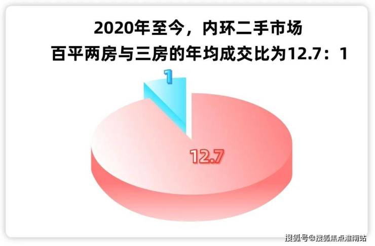 从2020年至今,内环的二手市场中,百平(建面约90-110㎡,下同)两房与三房之间的成交比例为12.7:1。