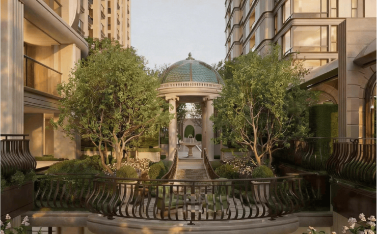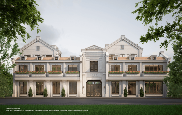 高层与洋房承袭外滩经典建筑的“横纵三段式”结构,由下至上的力量感,树立起极具辨识度的优雅姿态。别墅则甄取华盛里石库门的过街楼、老虎窗、立面腰线等元素,以大面积石材与金属细节点缀,实现历史符号的当代奢华表达。