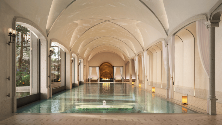 园林汲取全球顶奢酒店花园灵感,融贯上海在地的文化肌理,以“一庭一廊、两巷三园、十境共生”的叙事格局,铺陈出一幅可漫步、可沉浸的永续画卷。
