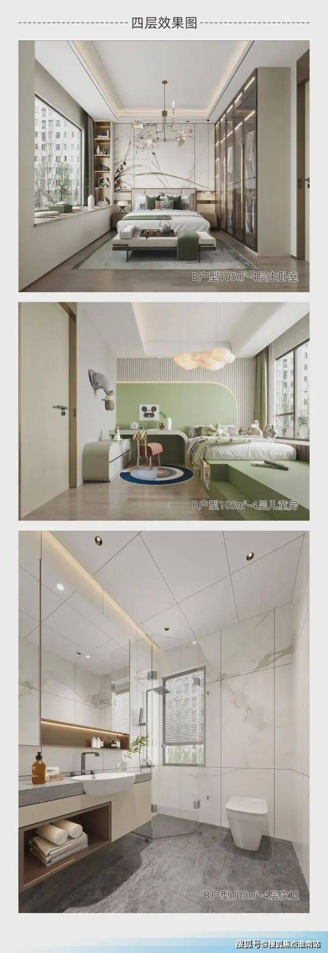 四层为2间起居室,全南卧室,从容尽享和煦阳光与清风,主卧套房,私密有度,尽享舒适日常。