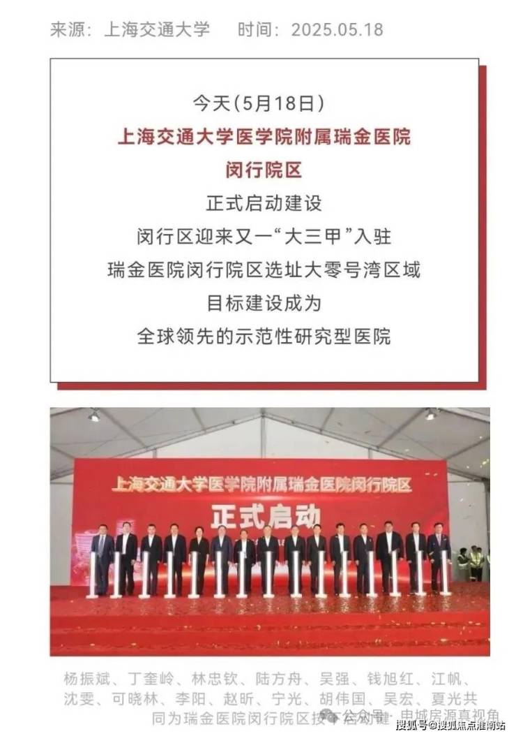 三甲医院:上海交通大学医学院附属瑞金医院闵行院区已于2025年5月动工,2028年正式营业。