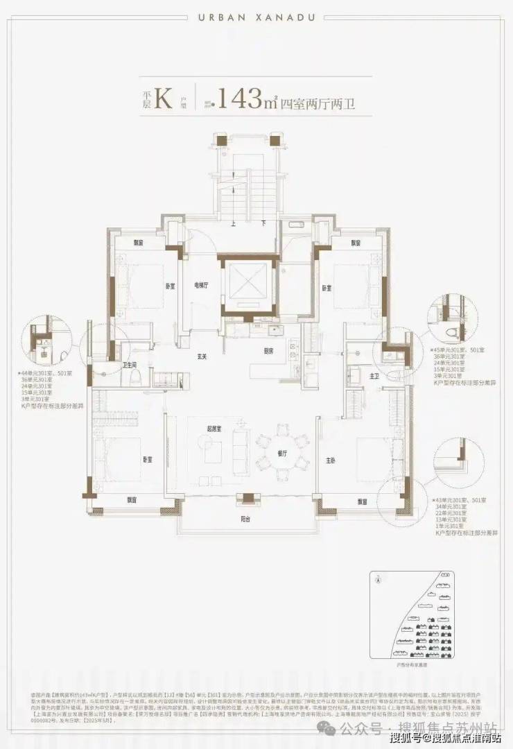 建面约139㎡上叠户型,三层是会客区,四层是居住区,阳台+露台+多个飘窗设计,附加空间非常大,在别墅类产品中实属罕见!