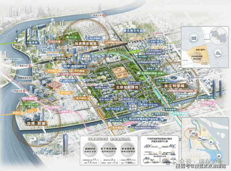 绿城·逸庐紧立足于陆家嘴国际金融城、张江科学城、世博前滩,三个副中心的黄金交点,紧邻张江科创城的北蔡楔形绿地,对望张江科学城“超级大脑”的上海光源、张江地标“科学之门”,并与陆家嘴、张江巧妙地形成科创、枢纽、生态的黄金三角,启幕理想人居新章。