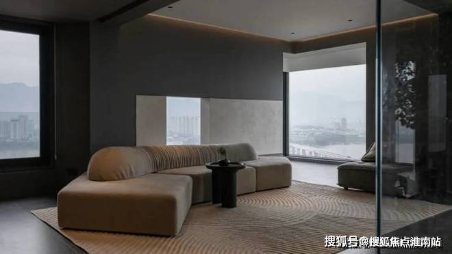 客厅是家里绝好的观景位之一,设计师在简约淡雅的沙发背景墙上开了一扇小窗,用“框”和“块”的手法,江景在有序的空间节奏中次第展开,成为家中的独特符号。
