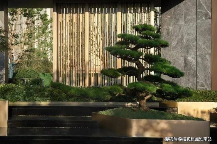 大门内部,是全冠移植的120年树龄的黑松+羽毛枫等名贵乔木,贵气雅致奢华,彰显着居住者的身份。