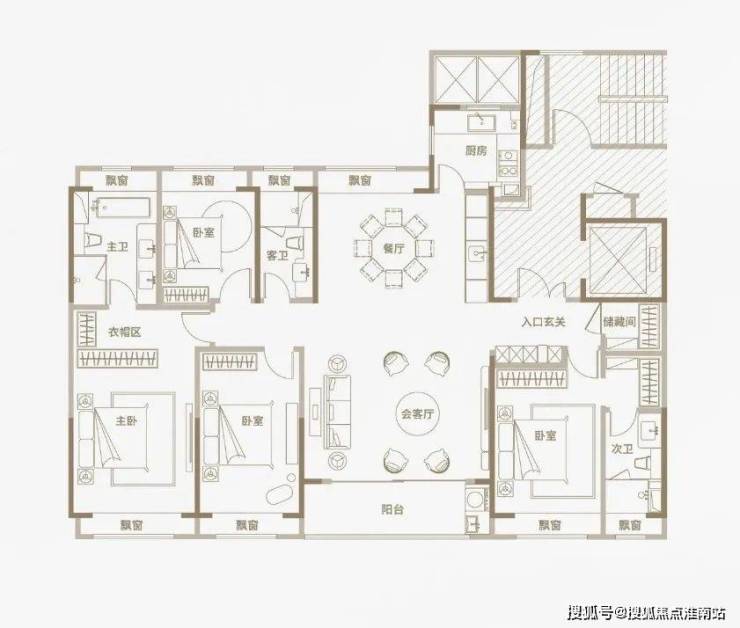 虽然螺蛳壳里做道场。但项目类一梯一户设计,得房率最高约80%,单看户型和室内产品还是不错的。户型方正,和大部分的有暗卫、朝向奇怪的豪宅比起来,碧云北外滩的户型非常的板正,南北通透,基本挑不出毛病。三种户型均为四开间朝南设计,4房2厅3卫的格局,主卧+次卧为双套房设计,全明设计,全屋多达8个飘窗。约180㎡4房2厅3卫