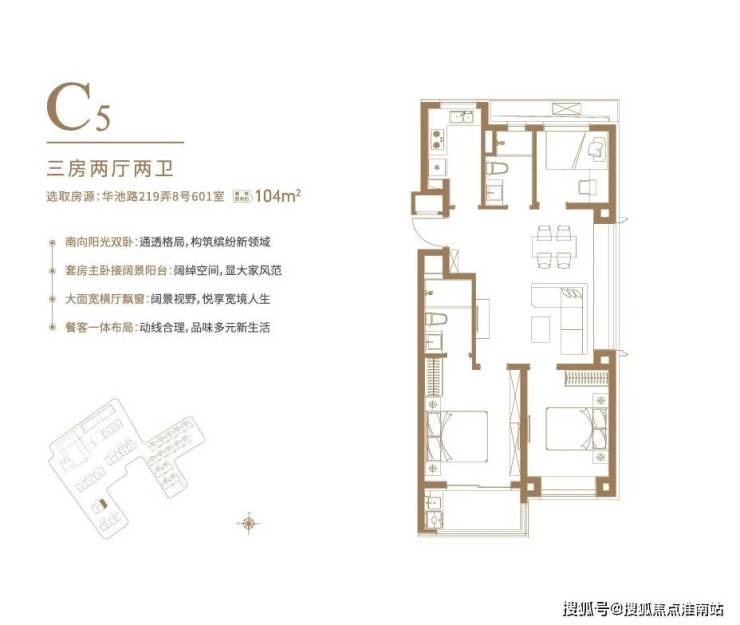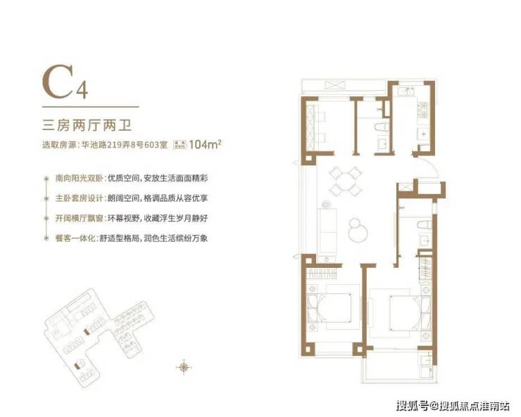 户型设计灵动,目前开放了104㎡3房2厅2卫和103㎡3房2厅2卫样板间,可谓是各有看点: