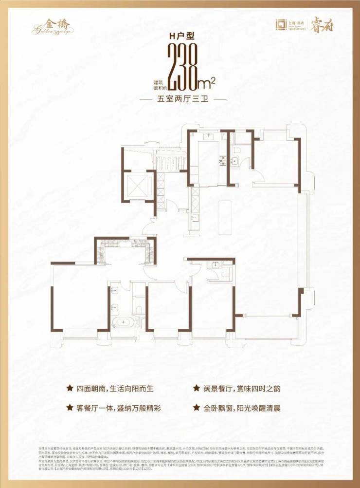 约238㎡五房:顶层大平层,南北通透,全明格局,动静分离