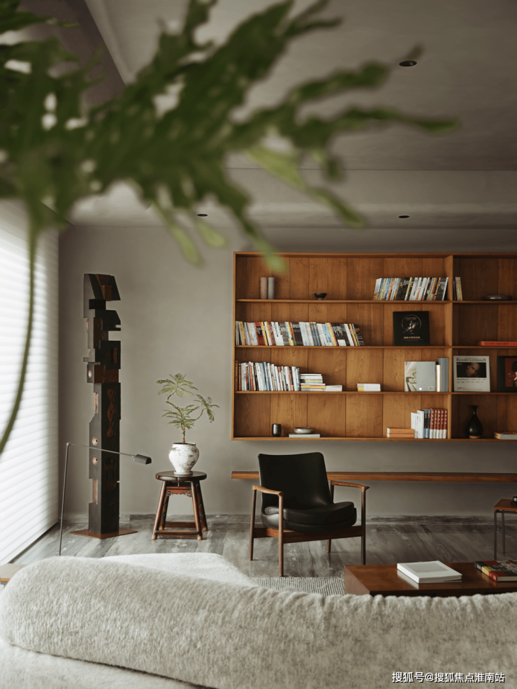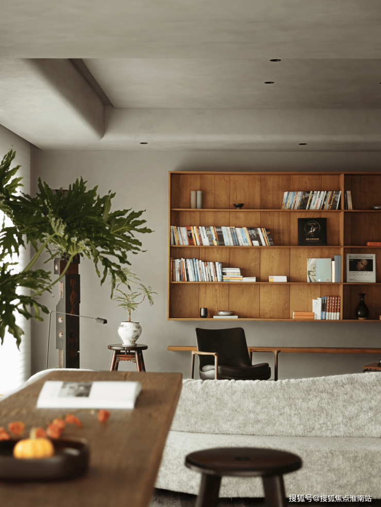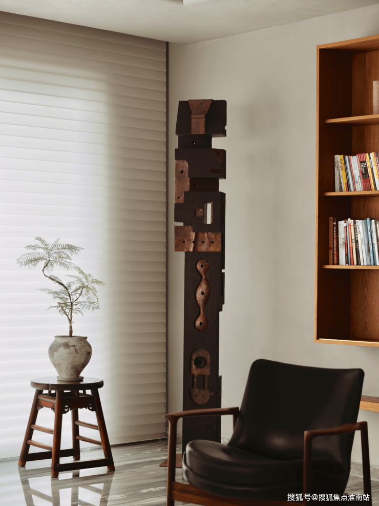 在角落里,摇曳的绿植为空间注入了生机与活力。老式木质小桌、中古扶手椅、木质书架和艺术摆件,这些简单的元素足以构成一个温馨的角落。