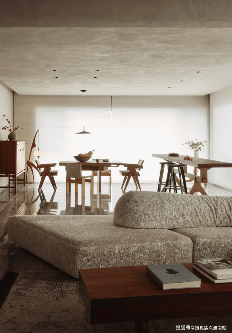 视线转向另一侧,视野突然明亮开阔起来。大客厅设为开放式模式,充当全家人的公共分享区。其拥有多功能、多元化组合,赋予更多轻松感。