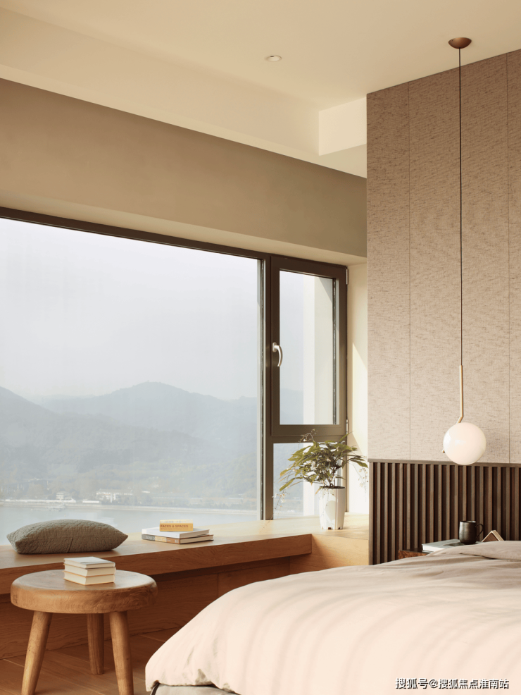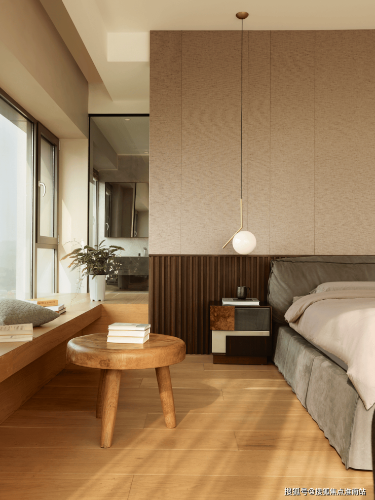 女儿房也是采用了饱和度较低的杏色和木色为主,这种简单的而不那么复杂的元素叠加,通过光作为空间的主角,让这种大自然的色彩更能突出一种宁静、温暖。