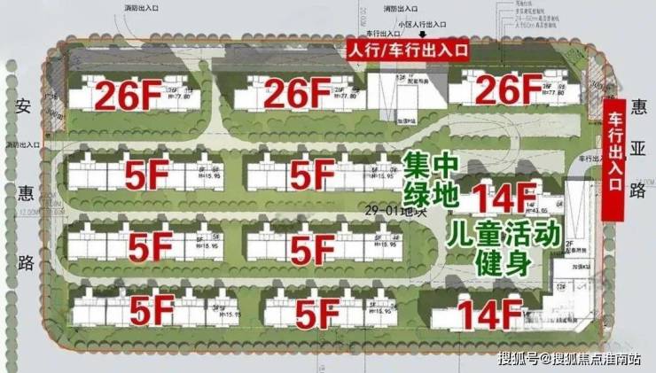 29-01地块原设计方案,将北面人行/车行的出入口向西侧的安惠路方向进行了调整,并疑似将北面的主入口调整到了惠亚路一侧。
