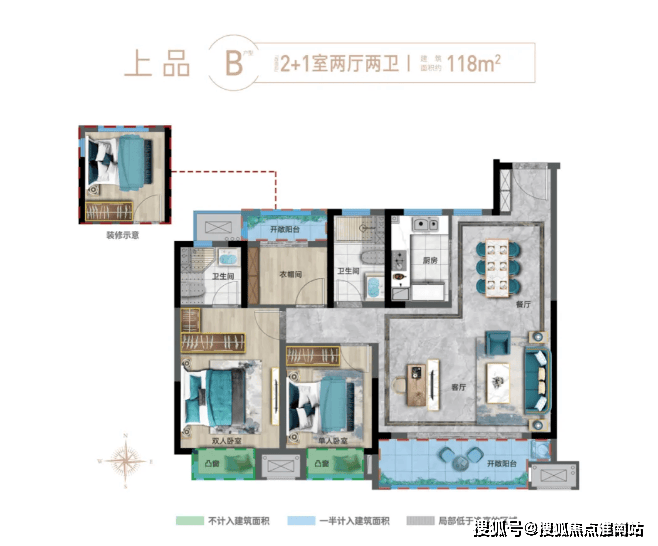 上品B户型建面约118㎡