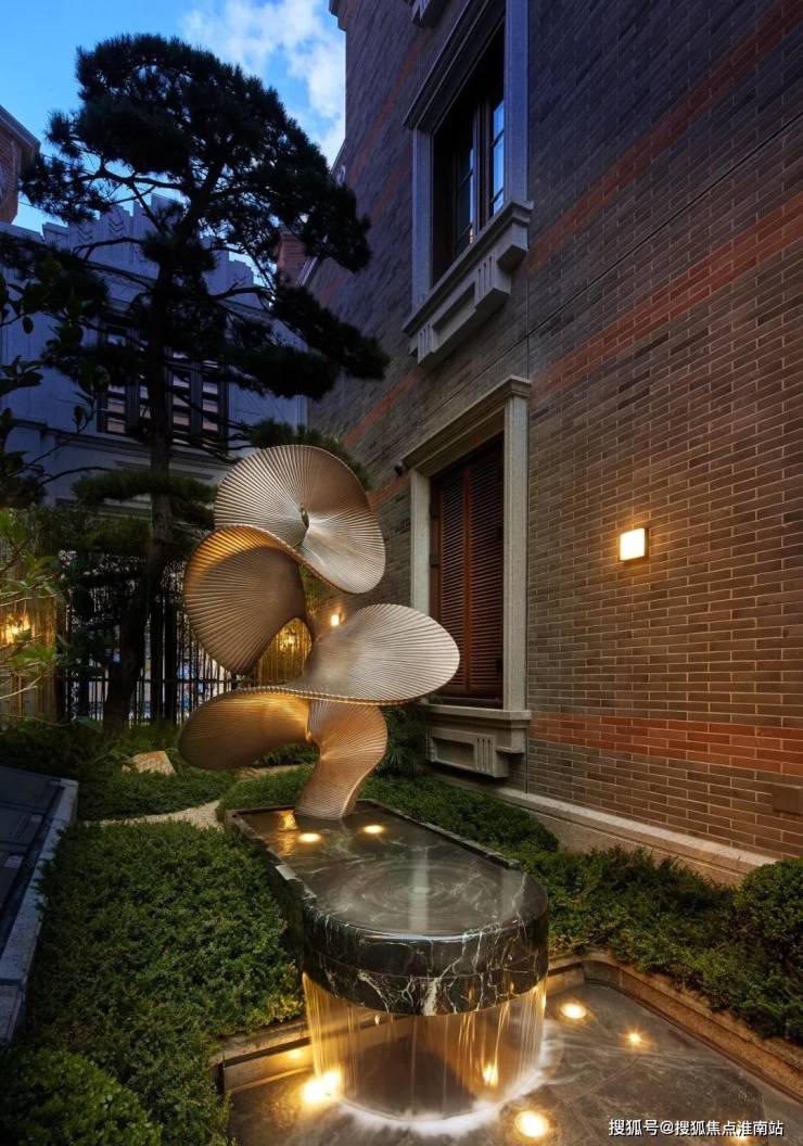 地面延续酒店式落客区海棠纹拼花镶钻,铁打纹工艺,其间还有老石板,青石板,中国黑老石皮,柏坡黄的石皮等原石原面铺装,老石皮从大料里取出,数量少而贵,由此也可看出保利·永兴里在别墅打造上是真舍得,也是真高级。
