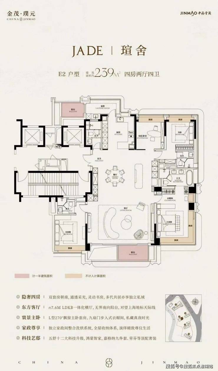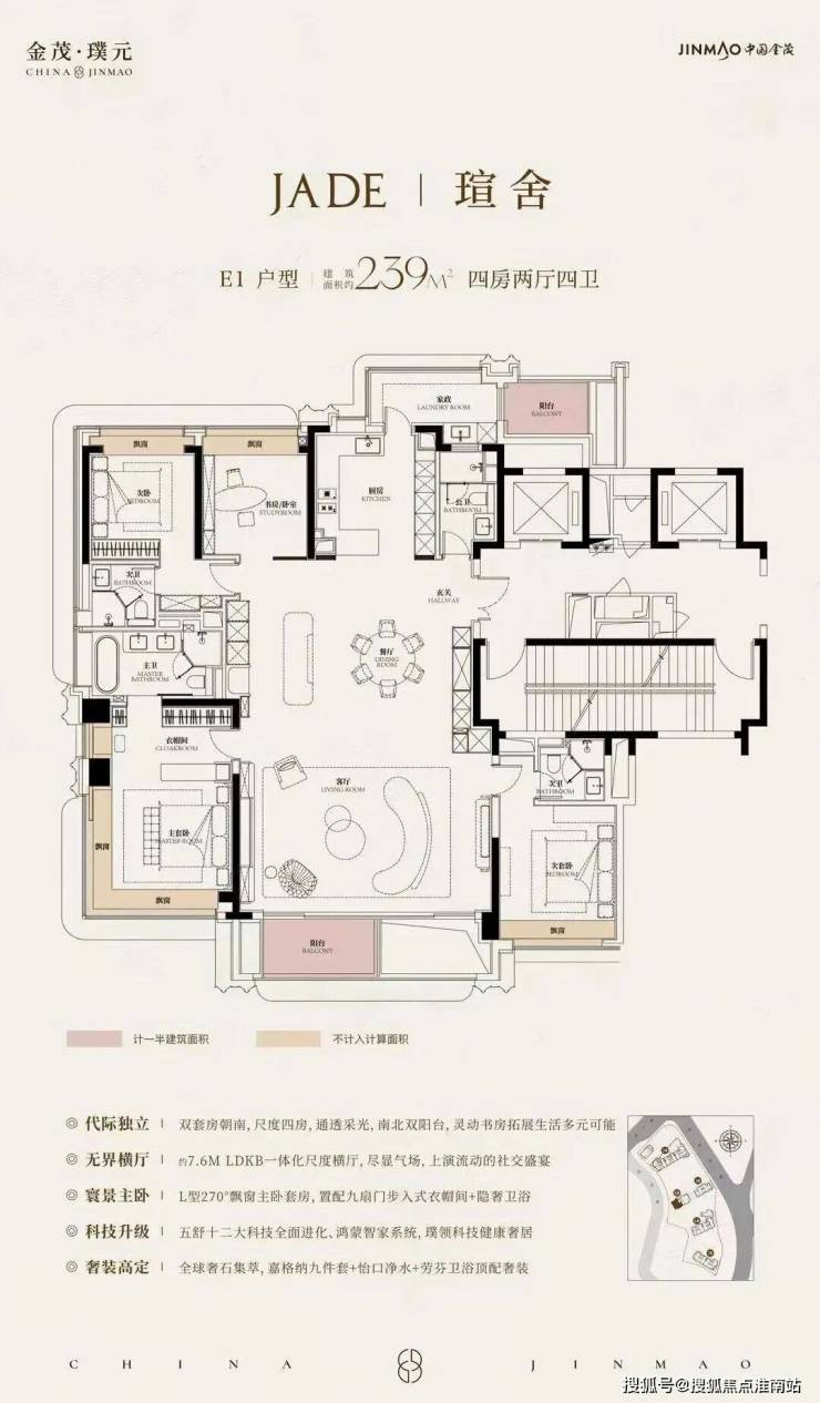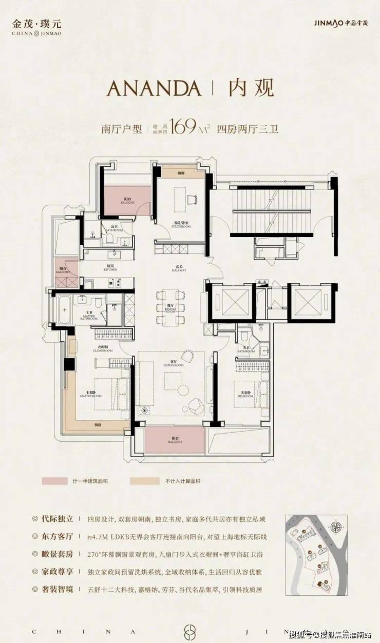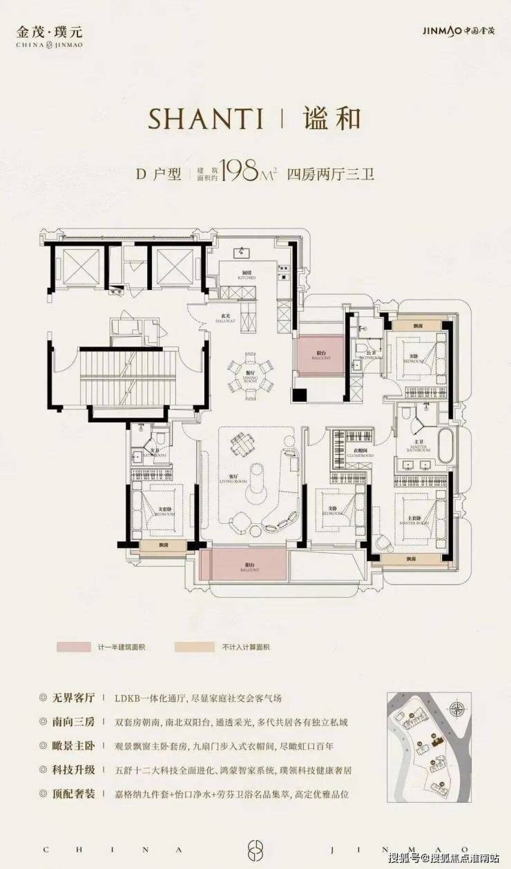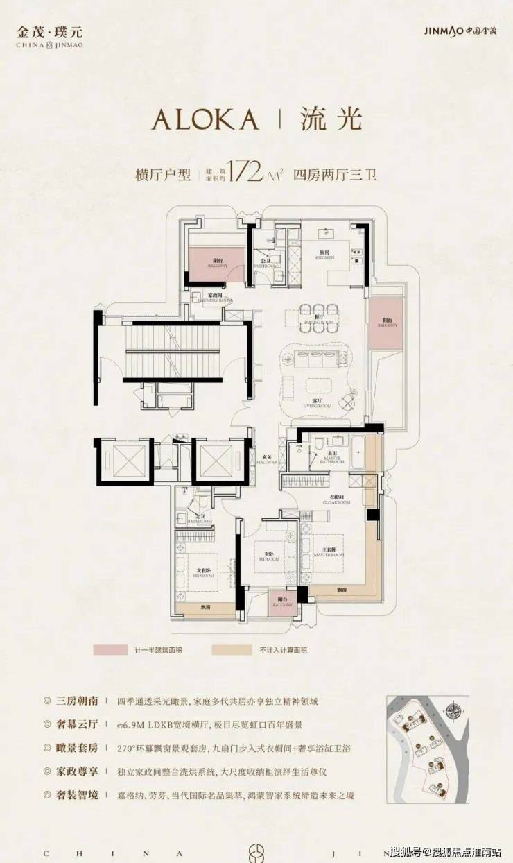 在建面约172㎡户型中,我们可以看到金茂对“三代同堂”生活方式的深刻理解!