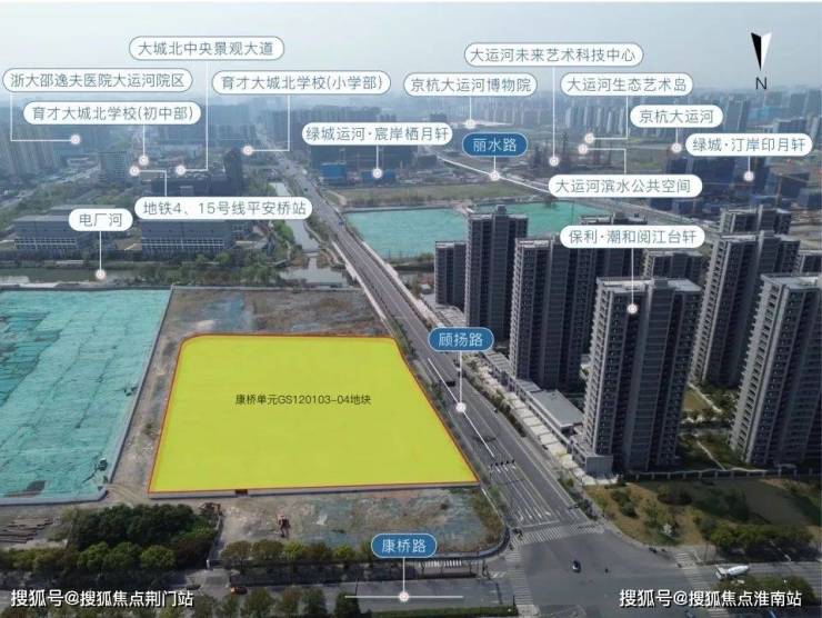 地块位置:西至顾杨路,东至规划道路,北邻康桥路(康良快速路),南至规划道路;(保利潮和阅江台轩东面)