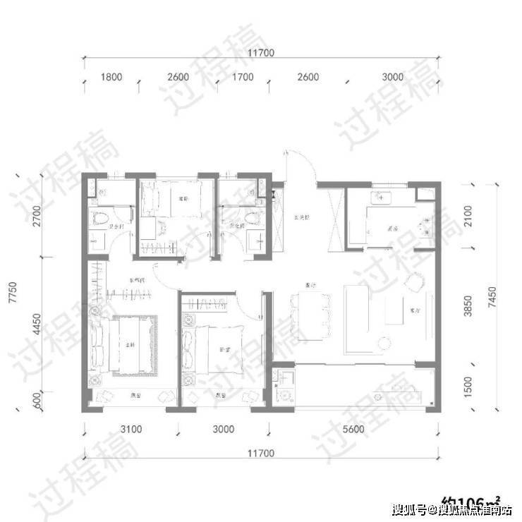 A1 三房两厅两卫 约106㎡