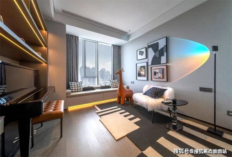 家人的互动和陪伴在时下快节奏的生活中显得尤为宝贵。书房开敞式布局毗邻客厅,一扇门扉使得整体空间可分可合,边界感得以模糊。满足户主在书房中阅读或是享受个人爱好时间的需求,偶尔在书房中工作的同时还能陪伴客厅中的家人闲聊沟通,更显情味和人文关怀。